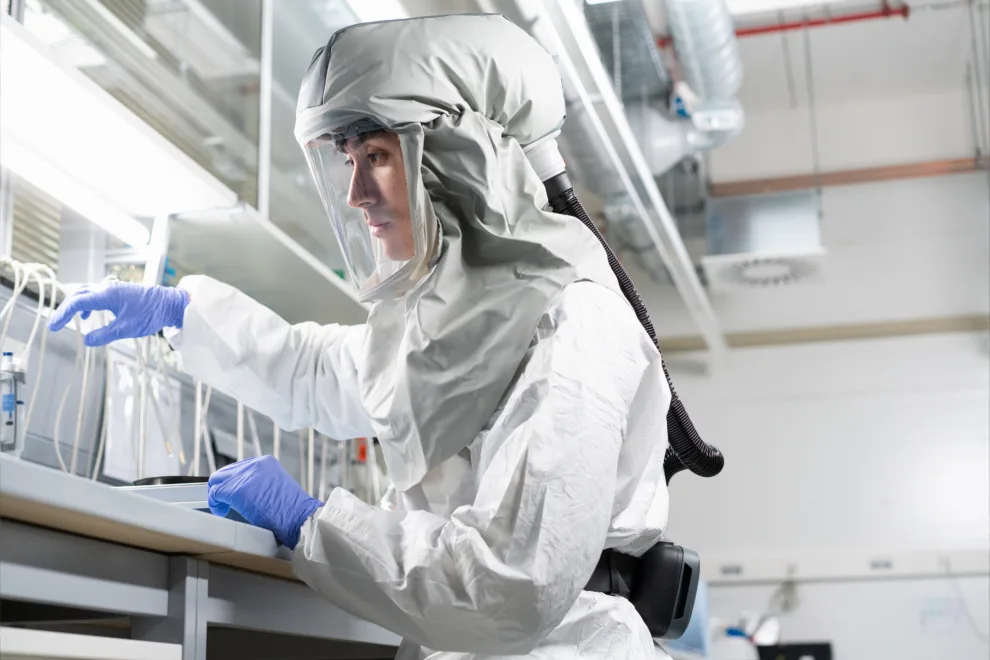 The filter is securely held in place by the hose connection, preventing accidental dislodging and ensuring safe operation of the PAPR system. In contrast to its predecessor, this device features integrated belt loops, reducing the number of components that need to be disassembled for cleaning and minimising the risk of losing or breaking parts.
