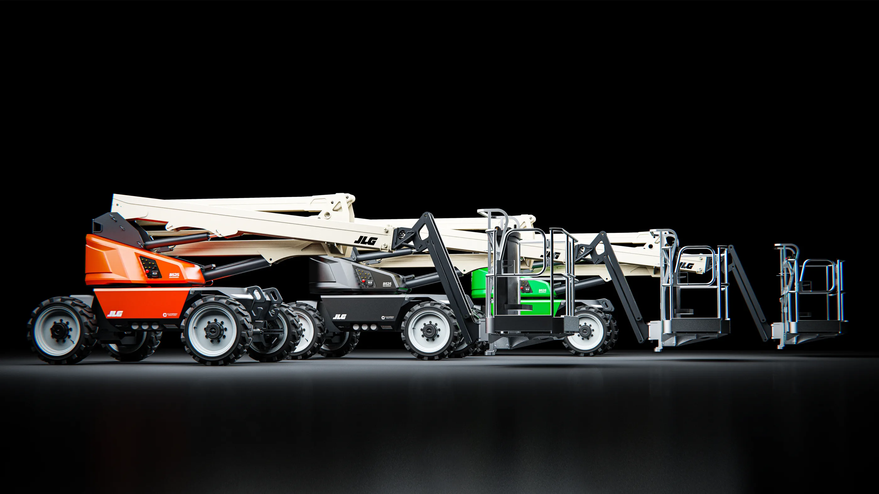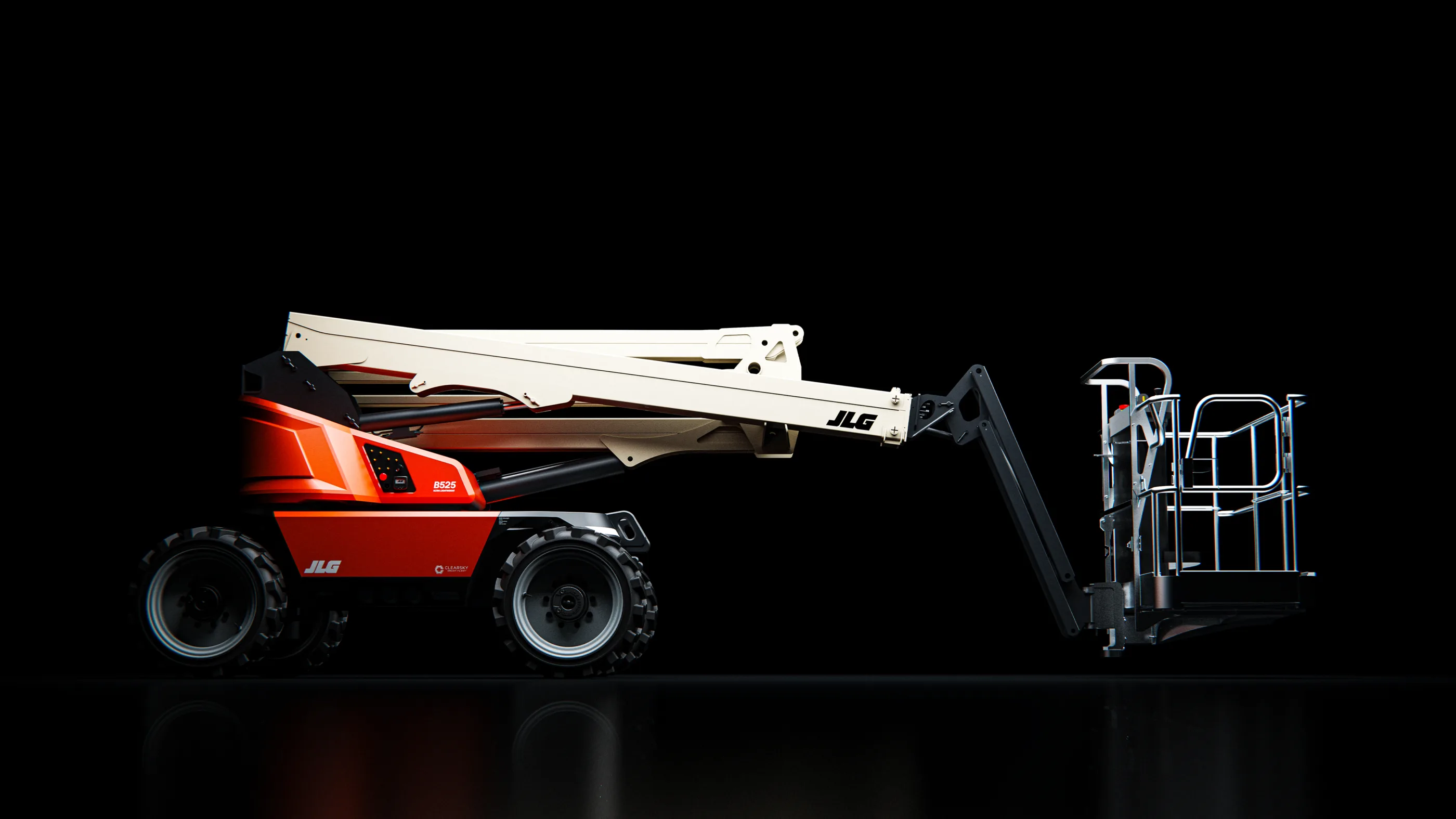 DCA collaborated closely with JLG to transition the platform to a fully electric architecture. This shift required a complete structural redesign, going far beyond the removal of the internal combustion engine. By relocating major components from the turret into newly developed chassis-side pods, both visual bulk and physical mass were significantly reduced, while lowering the centre of gravity for improved stability.
